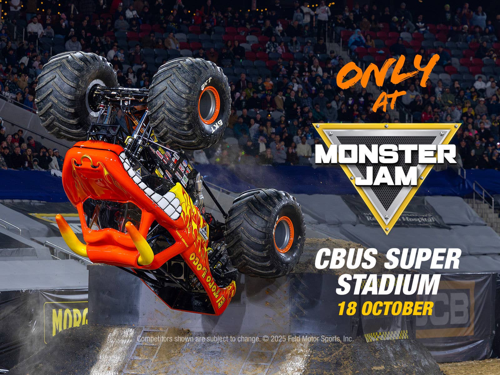 This is your chance to witness the world’s most famous trucks, including the legendary Grave Digger, Son-uva Digger, JCB Digatron, Sparkle Smash–making its international debut–tear up the Cbus Super Stadium dirt with amazing stunts, flips and jumps.